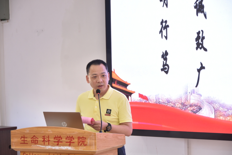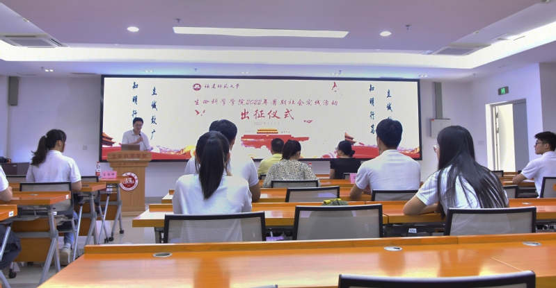 7月7日下午,生命科学学院在理工楼13号楼6层学术报告厅举行2022年大学生暑期社会实践活动出征仪式。校团委副书记吴小英、学院党委书记张兆文、学院党委副书记廖元春、社会实践团队指导老师、各年级辅导员以及各实践队学生代表20余人参加仪式。本次仪式由学院团委负责人、研究生辅导员王怡坤主持。