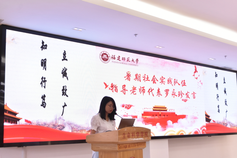 学院党委副书记廖元春介绍了学院2022年大学生暑期社会实践活动队伍情况,希望同学们把书本知识、专业所学运用到社会大课堂中,在实践中锤炼意志品质,在服务中彰显人生价值。辅导员罗永珍、2020级本科生谢怡琳分别作为指导老师代表和学生代表发言。