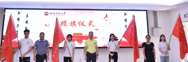 会上,吴小英、张兆文、廖元春共同为实践团队代表授旗。