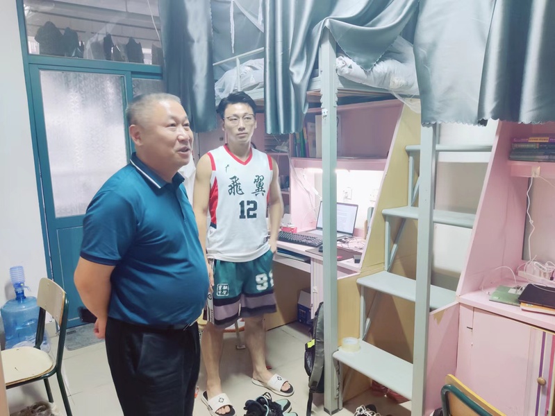 会后,与会人员检查了宿舍健康观察点、一楼值班检测点、宿舍楼内各项设施,排查宿舍安全隐患;走进学生宿舍,关心学生学习、生活情况。