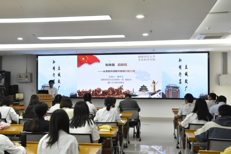 4月21日下午,生命科学学院在理工13号楼6层学术报告厅召开党史学习教育专题讲座。省委党史方志办党史研究一处副处长曾永志博士、院党委吴志锋副书记、党委组织员、全体辅导员、学生党员、2021年春季党校培训班学员参加讲座。