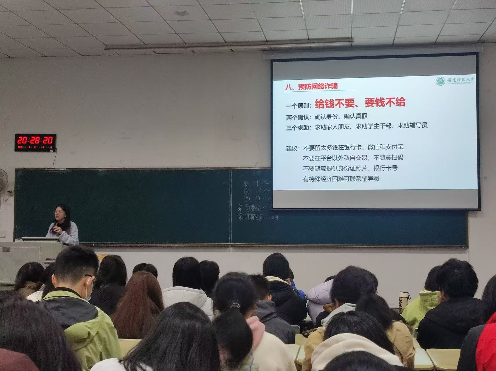 随着互联网的普及,网络诈骗案件频发,诈骗手段不断翻新,严重威胁公众的财产安全和个人信息安全。为提高同学们的防范意识,减少诈骗案件的发生,学院开展此次防网络诈骗宣传活动。在活动中,导员向同学们普及了几方面防诈骗技巧,如不轻信陌生电话、短信、链接;不随意透露个人信息和银行账户信息;遇到可疑情况及时报警或咨询亲友;安装国家反诈中心APP,开启预警功能。