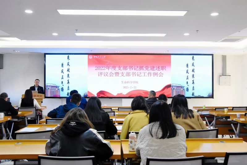 2月22日下午,生命科学学院党委召开2022年度党支部书记抓基层党建工作述职评议会。院党委班子、全体党支部书记、部分教师和学生代表参会,会议由院党委书记张兆文主持。