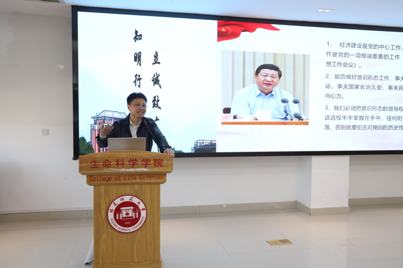 为深入学习宣传贯彻党的二十大精神,3月15日,生命科学学院邀请校学习贯彻党的二十大精神宣讲团成员、校产教融合发展中心主任黄宁教授作题为《深入学习贯彻党的二十大精神,建设具有凝聚力和引领力的社会主义意识形态》的宣讲报告。报告会由院党委副书记廖元春主持,院党委理论中心组成员、全体教职工和部分学生代表参会。