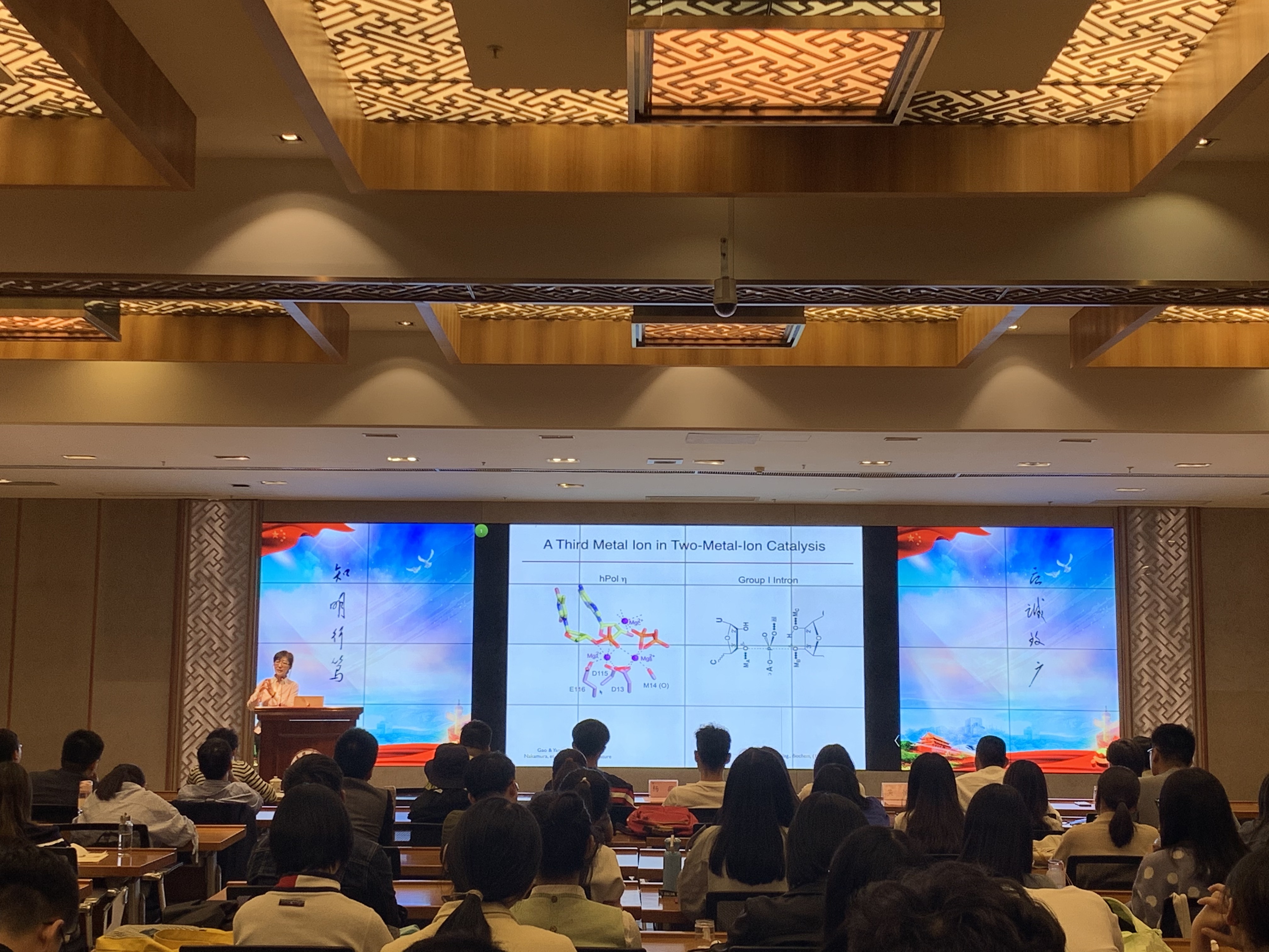 杨薇院士重点分析“中心法则中DNA复制叉的构想和机制”,从结构生物学的角度将这一基础的生物学问题透彻地进行剖析,为我们理解DNA复制叉这一DNA复制中的关键而又最复杂的结构,提供了最前沿的坚实研究和深刻见解,做出了突破性的研究成果。整场报告视野宽阔、立意高远、内容丰富、生动详实、深入浅出,为在座的师生们奉献了一场精彩纷呈的学术盛宴。