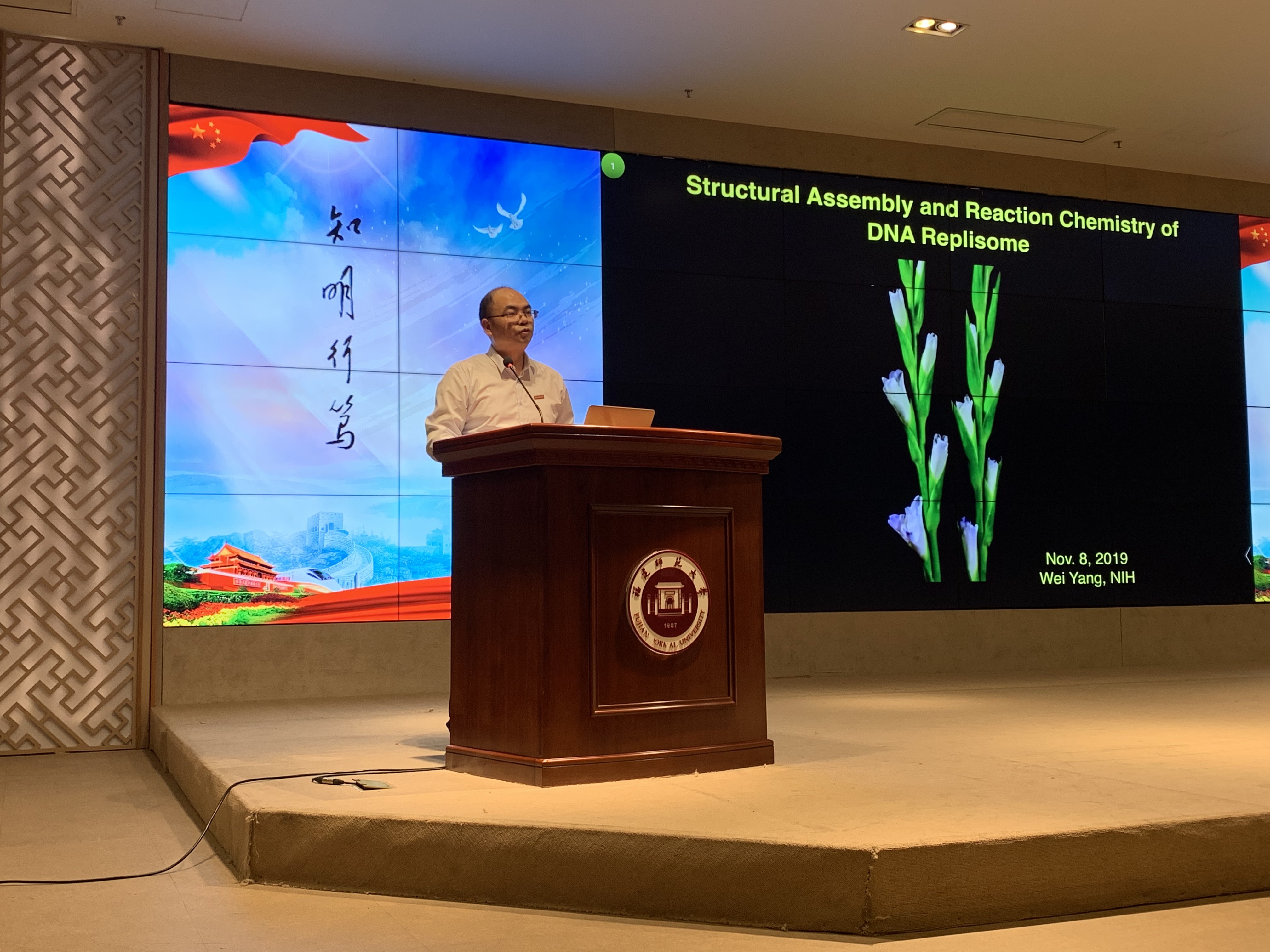 11月8日下午,美国国家科学院和文理科学院两院院士、国际著名生物化学及结构生物学家杨薇教授应邀来校为我院师生作题为《Structural assembly and reaction chemistry of the DNA replisome》的学术报告。校党委常委、纪委书记黄清波,科学技术处处长吴怡,院党委书记叶萍,院长欧阳松应教授,副院长、南方生物医学研究中心副主任陈骐教授,副院长谢秀俤老师、我院师生代表共200余人出席报告会,福州其他高校的师生也慕名前来聆听杨教授的报告。