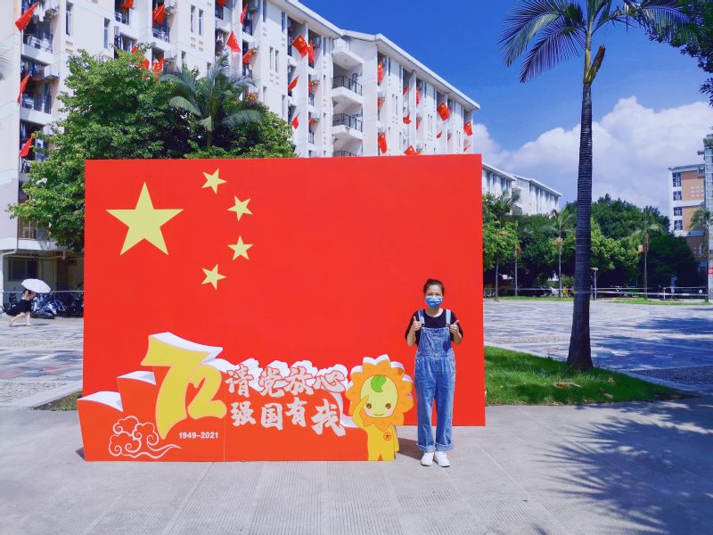 在三行情诗征集活动中,2019级生物科学(师范)陈静怡同学的一篇《五星红旗》用豪迈雄伟的诗句表达出拳拳爱国之心:“星星,是黑夜沉默的光;中国红,是东方璀璨的奇迹;五星红旗,是中华亘古不变的信念。”在电子海报征集活动中,2019级生物科学(师范)王泽琴同学以红色为底色、天安门广场为主要元素,表达出对祖国的崇高敬意。
