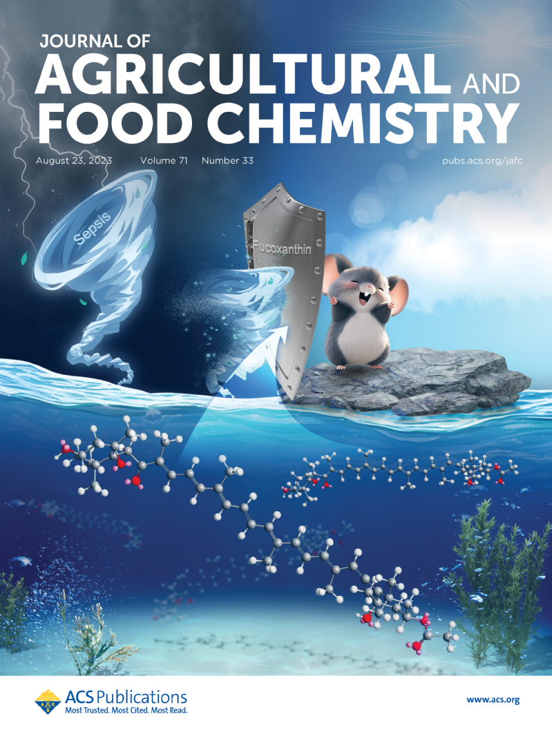 近日,我院苏经迁副教授课题组在美国化学学会(American Chemical Society)旗下的农林科学领域国际顶级(Top)期刊《Journal of Agricultural and Food Chemistry》上发表题为“Fucoxanthin Attenuates Inflammation via Interferon Regulatory Factor 3 (IRF3) to Improve Sepsis”的研究性论文 (https://doi.org/10.1021/acs.jafc.3c03247)。由于研究成果的新颖性和重要性,该工作选为当期的封面文章。