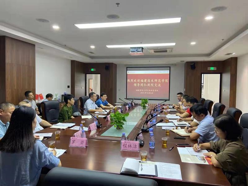 10月6日下午,福建技术师范学院副校长陈志勇带队到我院考察交流。福建技术师范学院科研处处长姚忠亮,食品与生物工程学院党政领导曹智、叶瑞洪、项雷文,我校研究生院常务副院长李步洪、副院长高磊,学院领导叶萍、欧阳松应、廖元春、张秋金等参加交流座谈会。座谈会由院长欧阳松应主持。
