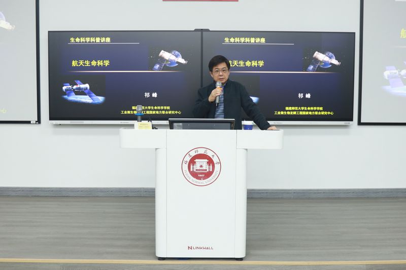 福州教研院副院长李棽,生命科学学院副院长祁峰,福州教研院福州教育研究院拔尖创新型学生培养研究中心主任郑琳、福州市生物学拔尖创新名师工作室池必文及来自福州市各中学的170余名师生参加开班仪式。开班仪式结束后祁峰教授为全体参训师生作《航空生命科学》专题讲座。