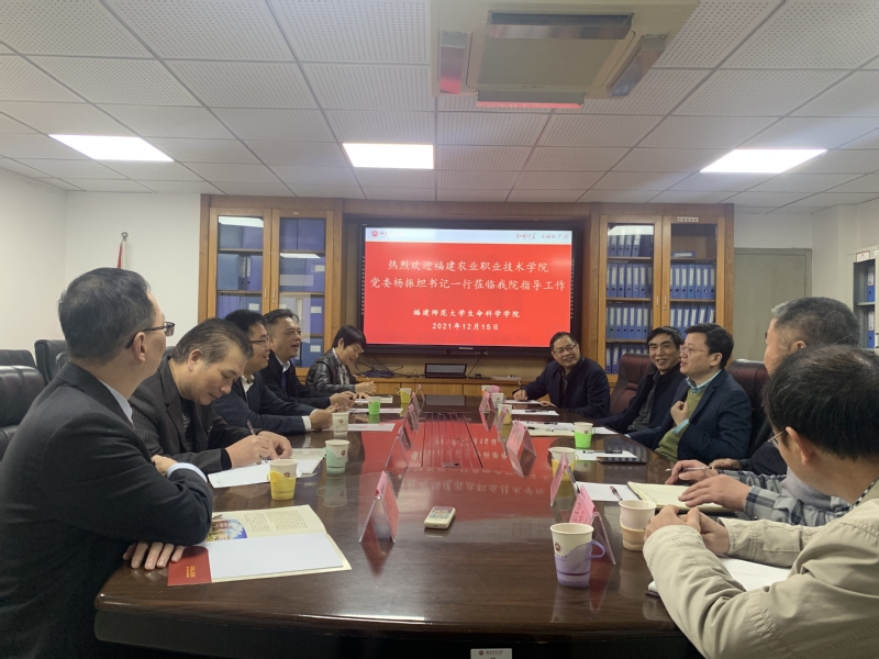 福建农业职业技术学院党委杨振坦书记首先介绍了学校发展情况及考察交流目的。我院欧阳松应院长介绍了学院近年来的发展情况。会上,双方就项目攻坚、师资交流合作、产业学院建设、标本馆建设、黄酒研发技术合作、产学研联合创新项目合作等方面进行了深入研讨和交流。