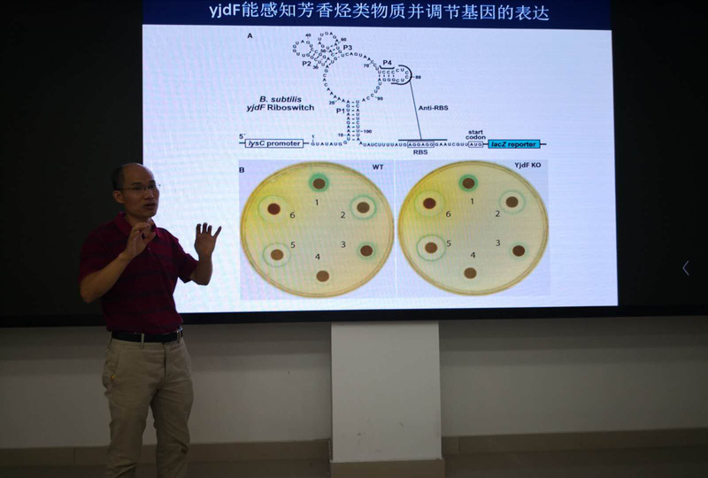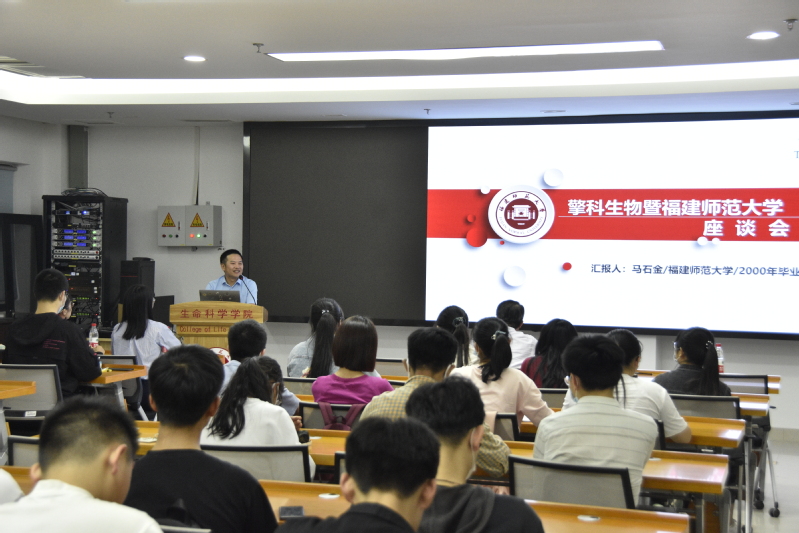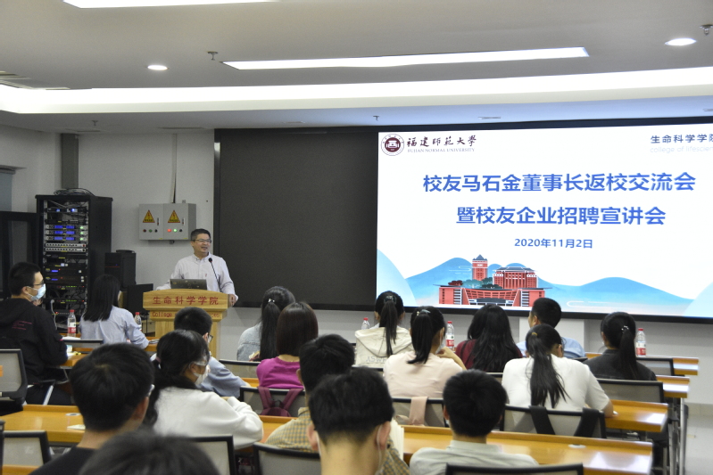 讲座上,校友马石金董事长介绍了合成生物学领域发展现状,并结合自身实践详细介绍了创业经历、职业发展和人生感悟,勉励同学热爱专业,学好本领,鼓励大学生在参加创业实践活动中强化创新意识和创业能力的培养,强调成功的历程是曲折的、艰辛的,要不畏艰难,勇于挑战,在危机中寻找先机。最后,马石金校友作公司招聘宣讲,他介绍了公司概况和企业文化,并与同学交流如何成功应聘知名企业。分享会现场,同学们与马石金校友积极互动,气氛热烈。